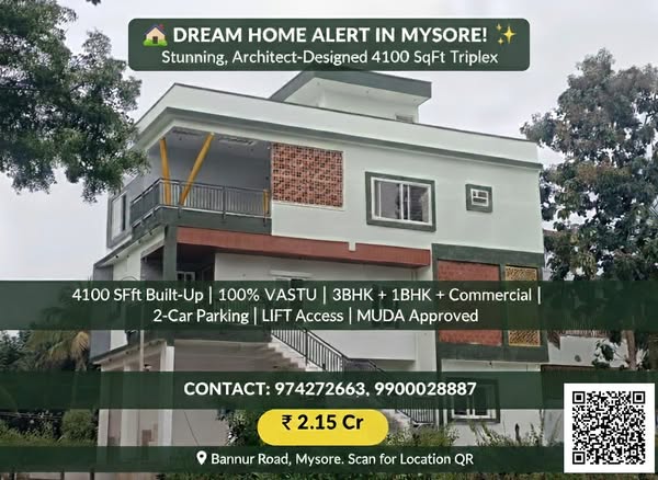 FOR SALE: Brand New, MUDA Approved Triplex 4100 Sqft Builtin Home in Mysore!